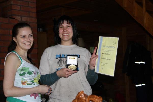 Palkintojenjakotilaisuuden jälkeen kisailtiin vielä hetken verran, kun oli vuorossa lämäyskisa, välineenä lätkämaila ja pehmopallo, kohteena tölkit. Haastava oli kisa, sillä lopulta kolme paria nousi voittoon kahdella kaadetulla tölkillä.